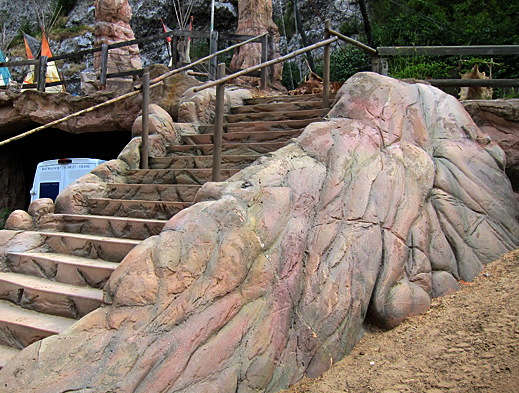 - Kunstfelsentreppe mit 20 Stufen als Aufgang zum Comanchendorf
